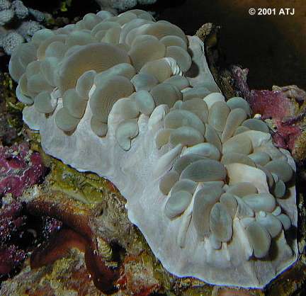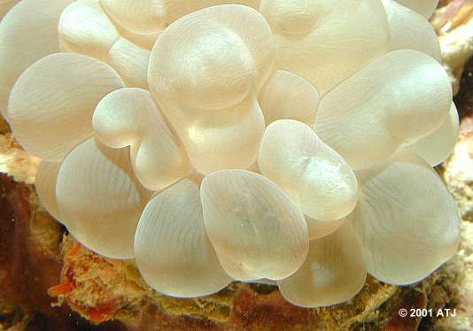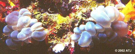 Close up of Bubble Coral P. sinuosa showing vesicles. The vesicles are modified tentacles and are used to enhance the light capturing abilities of the coral. |