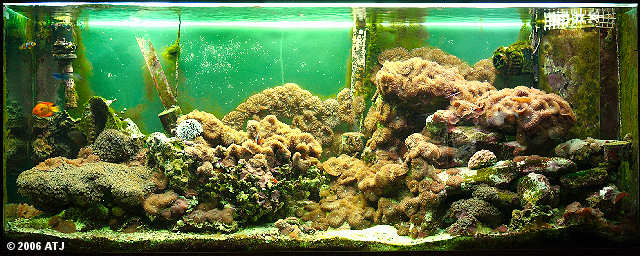 Decorations: 35kg of Live Rock. 6cm of Shell Grit substrate. Other decorations include natural and artificial rock, shells and coral skeletons. |