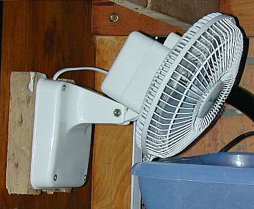 Desktop fans are relatively inexpensive. I have bought a few 15cm ones from Hardwarehouse in Sydney for $11.95 and a slightly different design from Harvey Norman for $14.00. Being cheap, these tend to be made from plastic which reduces the chance of rusting and other forms of oxidation. The fan should be mounted securely such that it will blow over the surface of the water, the sump being the most suitable site.