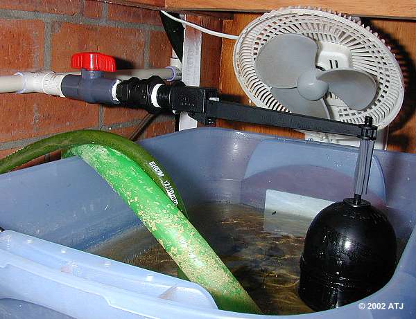 Freshwater is automatically added to the tank from a reservoir (Figure 2) above the tank. A float valve in the sump (Figure 3), regulates the water flow so that water is only added as it evaporates. The reservoir holds 18L, services both 50G1 and 50G2 and is topped up with RO water produced by my Probe Counter Top RO 4 Stage # 43230 from Hills District Water Filters.