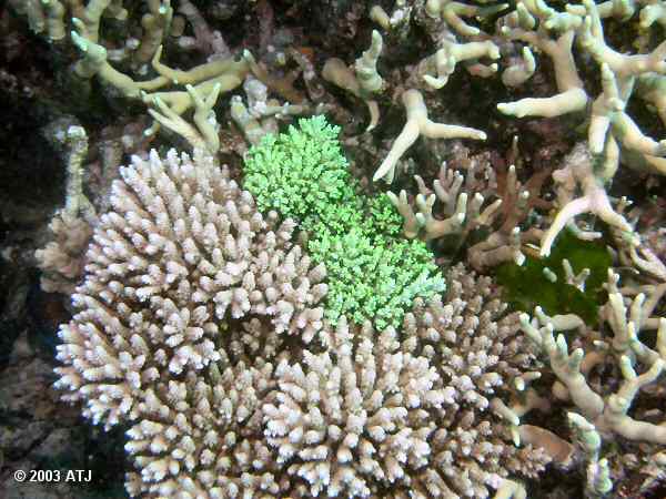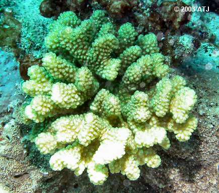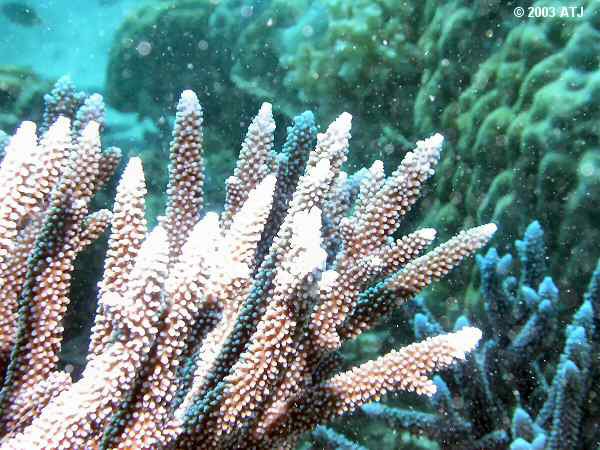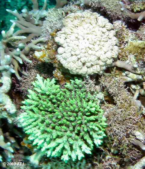 Xenia sp. and Acropora sp. at 5.6 m. |