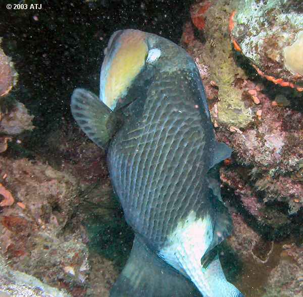 Titan triggerfish, Balistoides viridescens, at 8.3 m. |