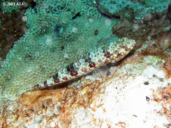 Reef lizardfish, Synodus variegatus, at 7.5 m. |