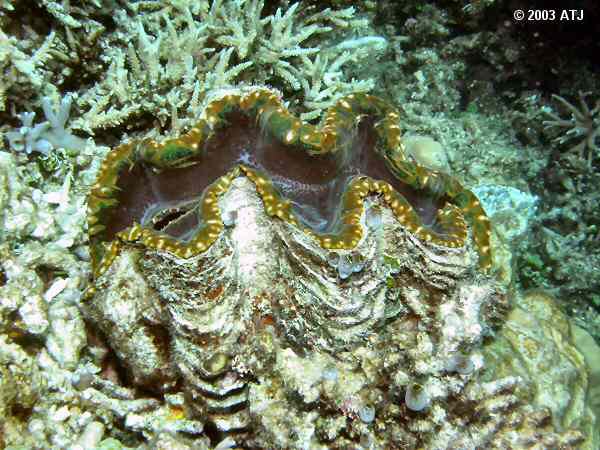 Giant clam, Tridacna, sp. at 3.3 m. |