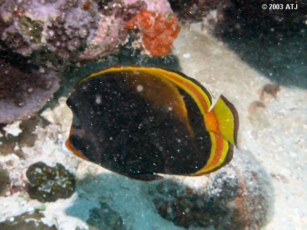 Saddled butterflyfish, Chaetodon ephippium, at 9.5 m. |