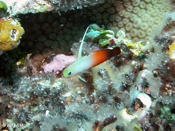 Red firefish, Nemateleotris magnifica at 10.5 m. |