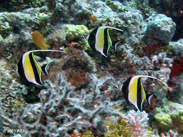Moorish idols, Zanclus cornutus, at 11 m. |