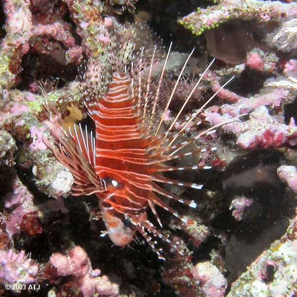 Spotfin lionfish, Pterois antennata, at 10.5 m. |