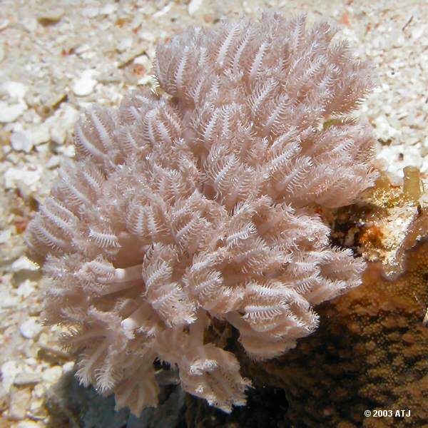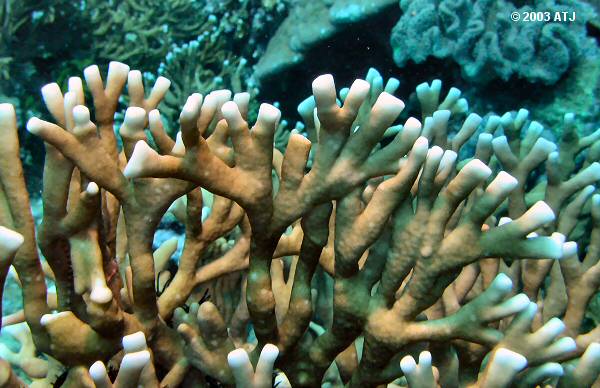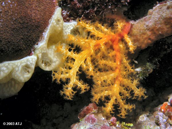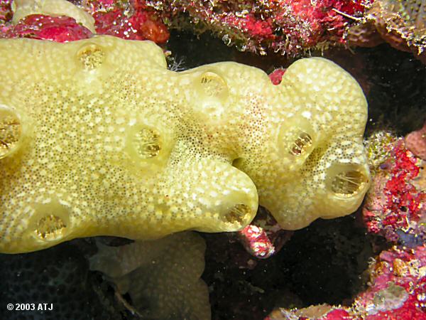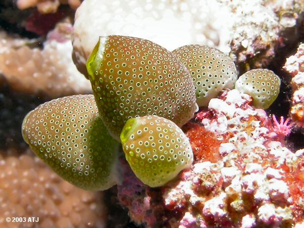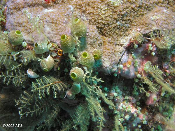 Hydroids, ascidians (Atriolum robustum) and Montipora sp. at 8 m. |