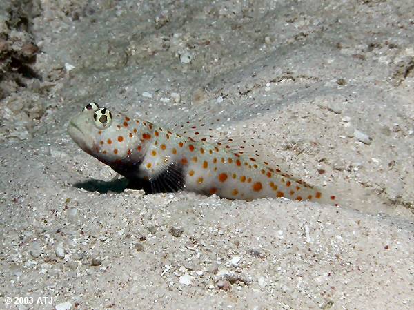 Spotted prawn goby, Amblyeleotris guttata at 8 m. |