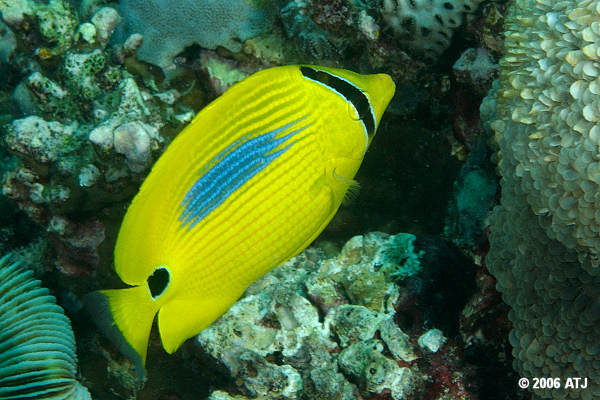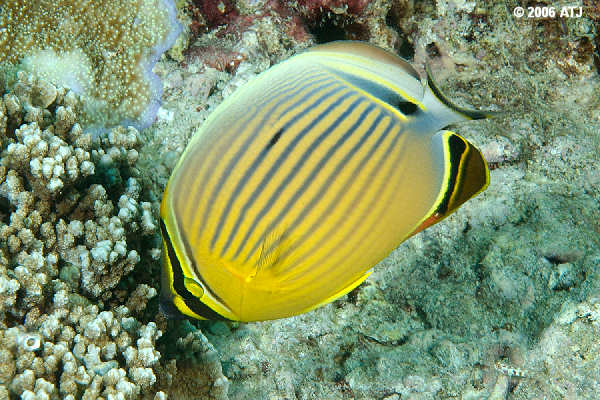 Pacific pinstriped butterflyfish, Chaetodon lunulatus. 6 m. |