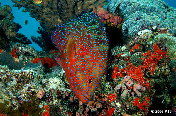 Coral cod, Cephalopholis miniata. 7.3 m. |