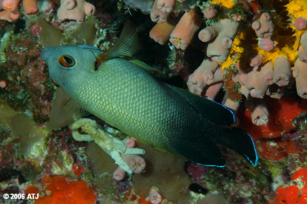 Pearl-scaled angelfish, Centropyge vrolikii. 10.5 m. |