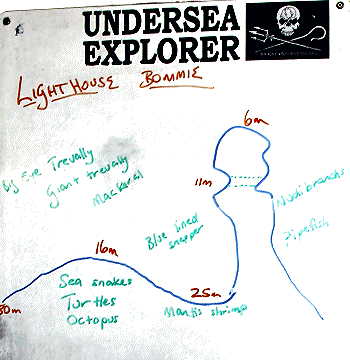 Descended to the small bommie next to Lighthouse Bommie and then swam clockwise around Lighthouse Bommie getting shallower. |