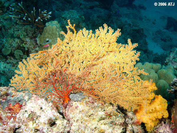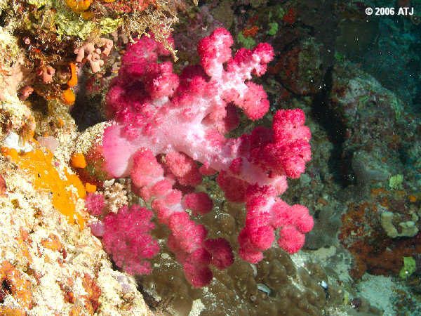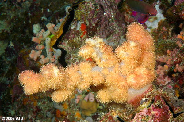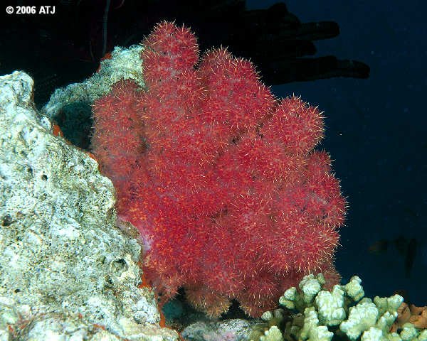 Soft coral colony, Briareum, around Montipora sp. colony. 20.1 m. |
