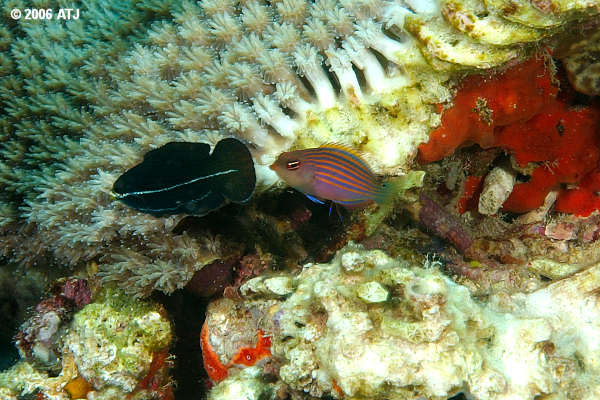 Tubelip wrasse, Labrichthys unilineatus and sixline wrase, Pseudocheilinus hexataenia. 6 m. |