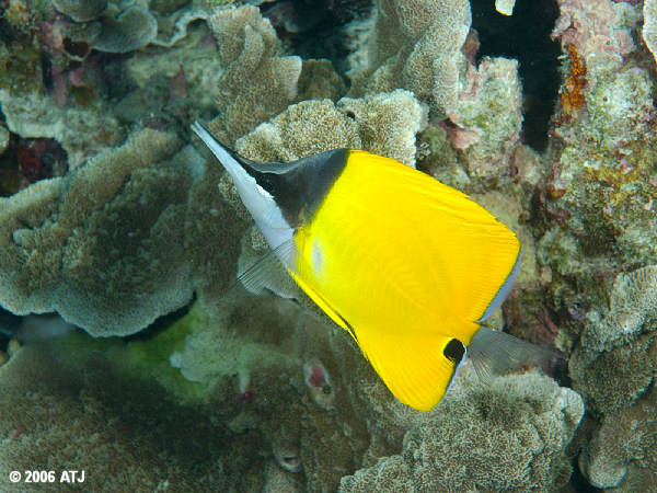 Yellow longnose butterflyfish, Forcipiger flavissimus. 7.1 m. |