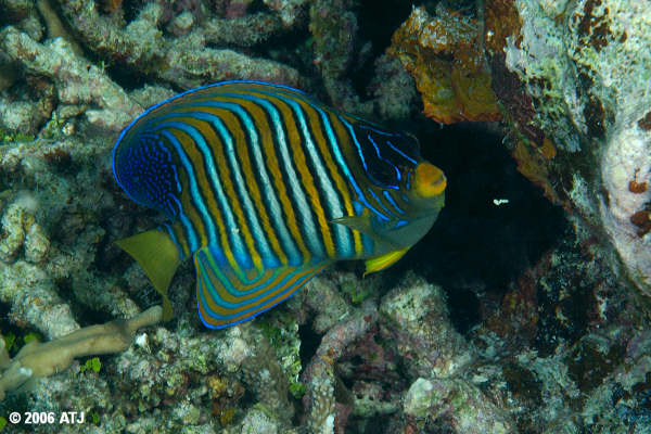 Regal angelfish, Pygoplites diacanthus. 4.8 m. |
