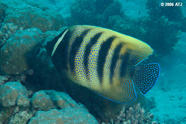 Six-bar angelfish, Pomacanthus sexstriatus. 5.8 m. |