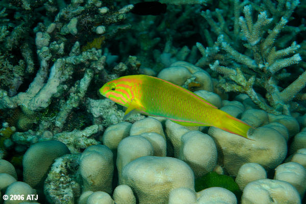 Yellow Moon Wrasse, Thalassoma lutescens. 3.7 m. |
