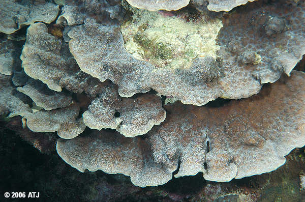 Turbinaria peltata with tiered growth form. Note that this is part of the same colony as in the previous photograph. 4.2 m. |
