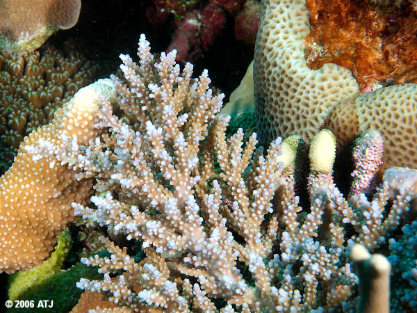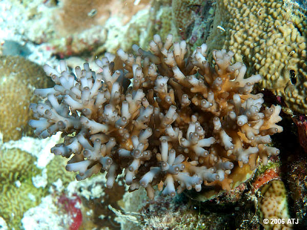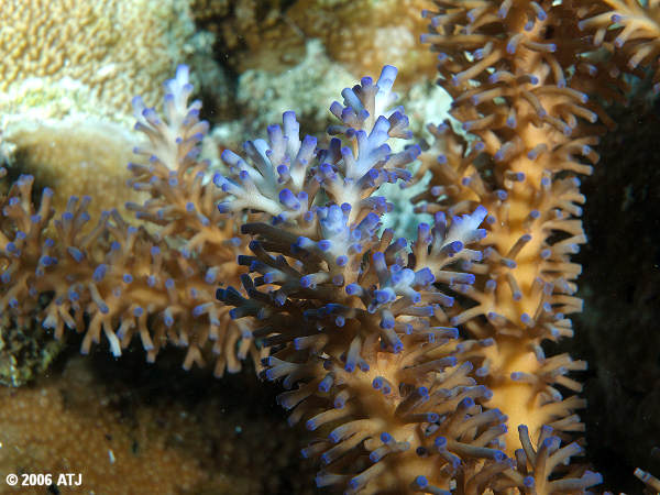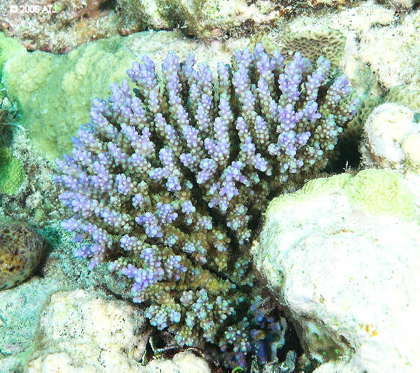 Acropora (Isopora) sp. colony. 18.7 m. |