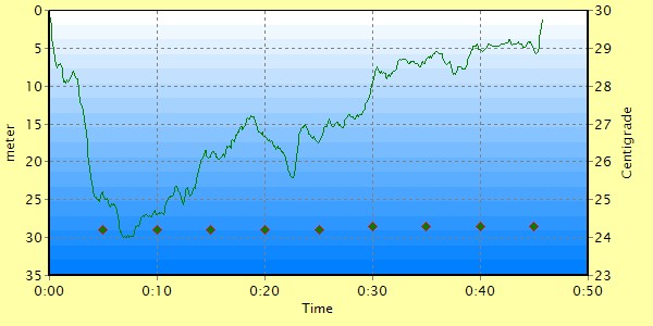 Pyramid butterflyfish, Hemitaurichthys polylepis. 25.4 m. |