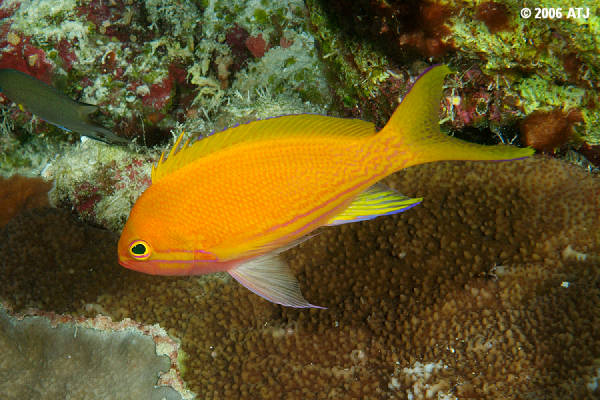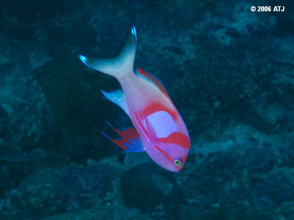 Female squarespot anthias, Pseudanthias pleurotaenia. 24.6 m. |