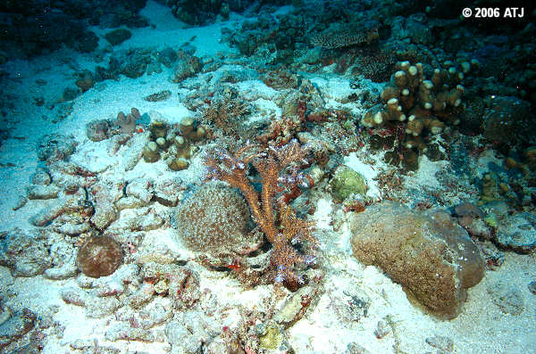 Reef scene, with Acropora sp. colony in centre. 26.8 m. |
