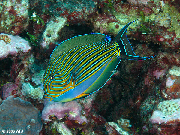 Lined tang, Acanthurus lineatus. 8.3 m. |