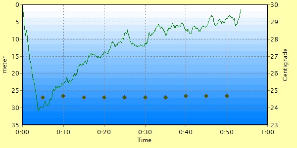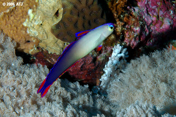 Purple firefish, Nemateleotris decora. 25.7 m. |