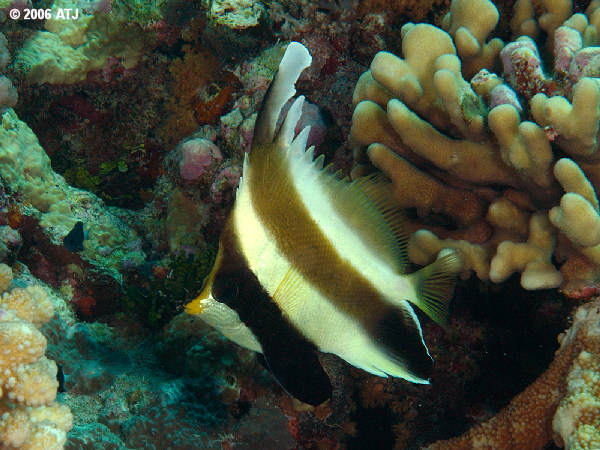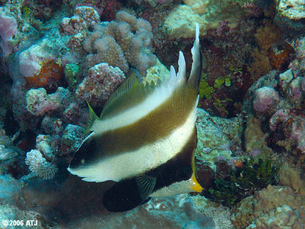 Pennant bannerfish, Heniochus chrysostomus. 6.2 m. |