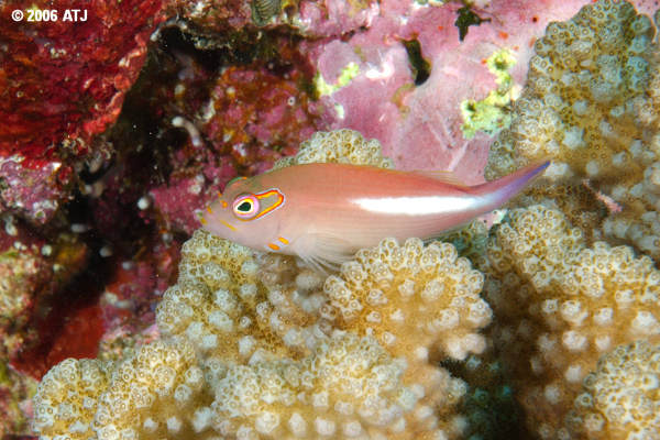 Arc-eye hawkfish, Paracirrhites arcatus. 10.9 m. |