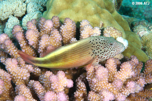 Blackside hawkfish, Paracirrhites forsteri. 6.9 m. |