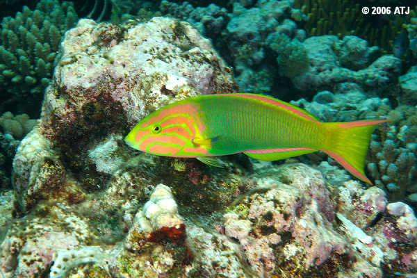 Yellow moon wrasse, Thalassoma lutescens. 5.8 m. |