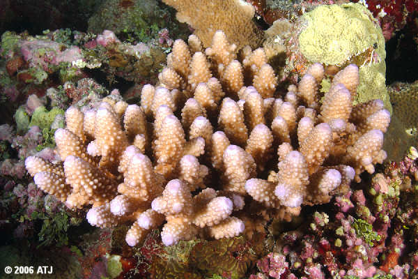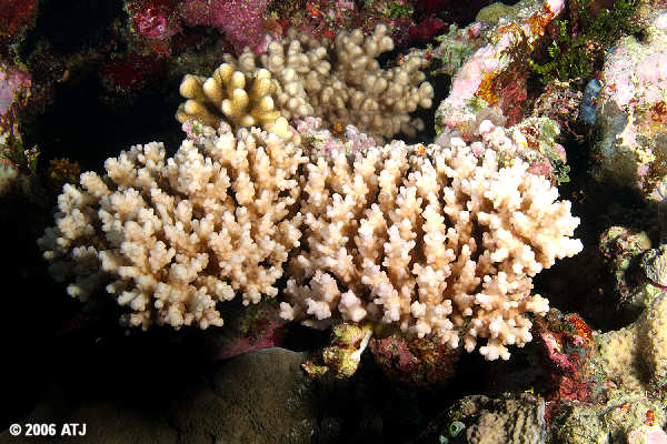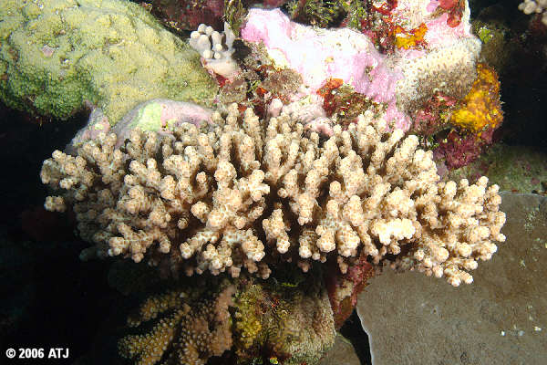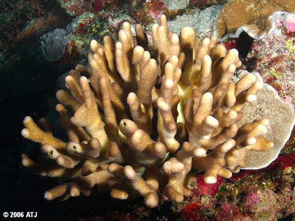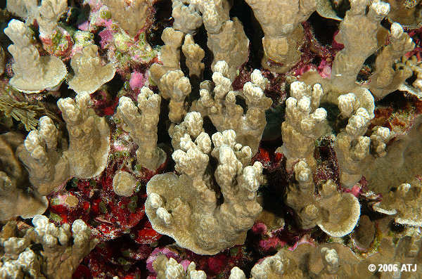 Two Pocillopora eydouxi colonies. 9.8 m. |