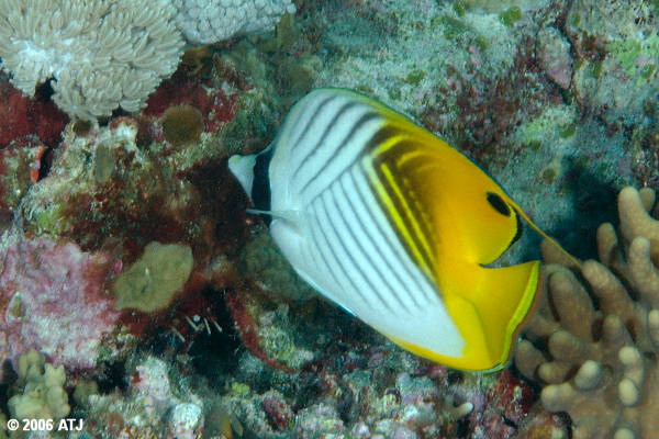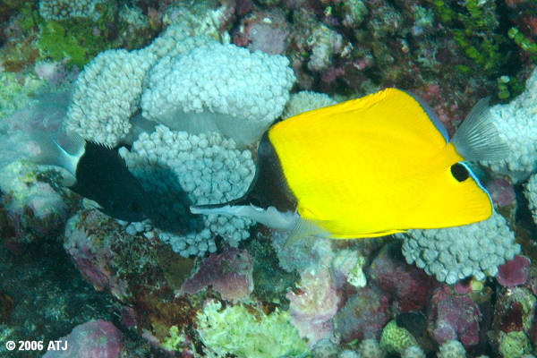 Oval-spot butterflyfish, Chaetodon speculum. 12 m. |