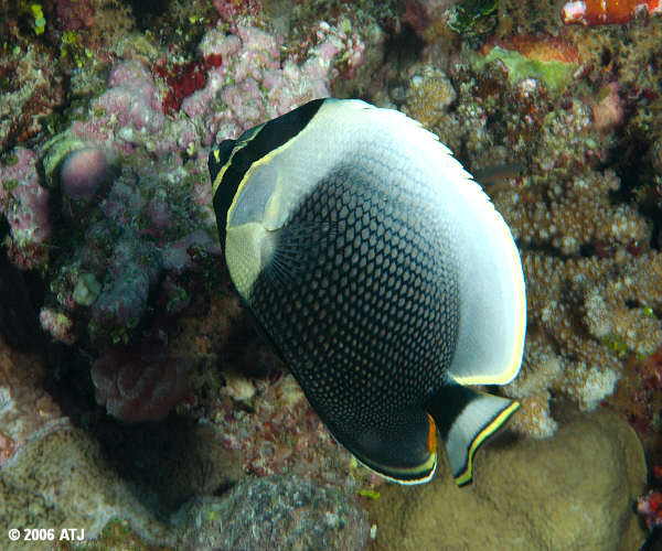 Reticulated butterflyfish, Cheatodon reticulatus. 12 m. |