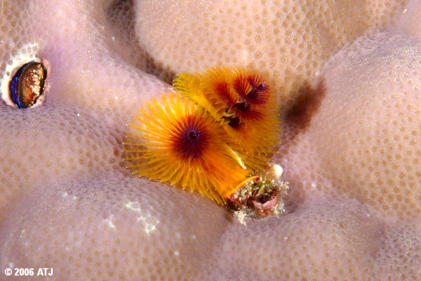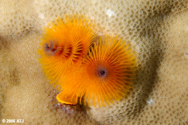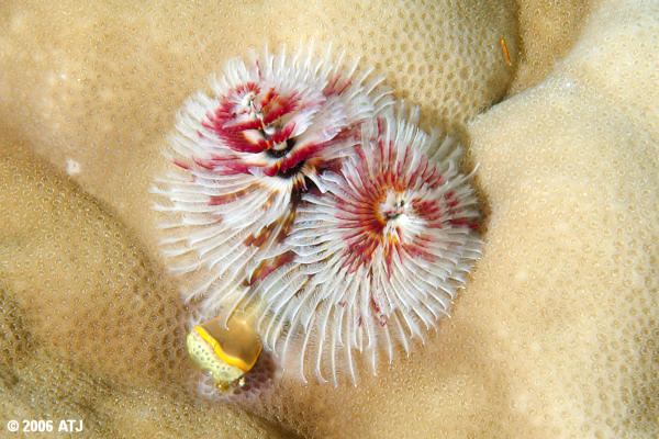 Christmas tree worm, Spirobranchus giganteus in Porites sp. colony. 13.9 m. |