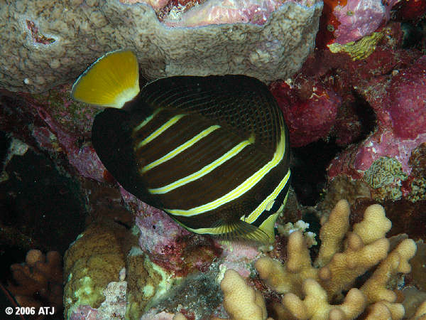 Threadfin butterflyfish, Chaetodon auriga. 10.9 m. |