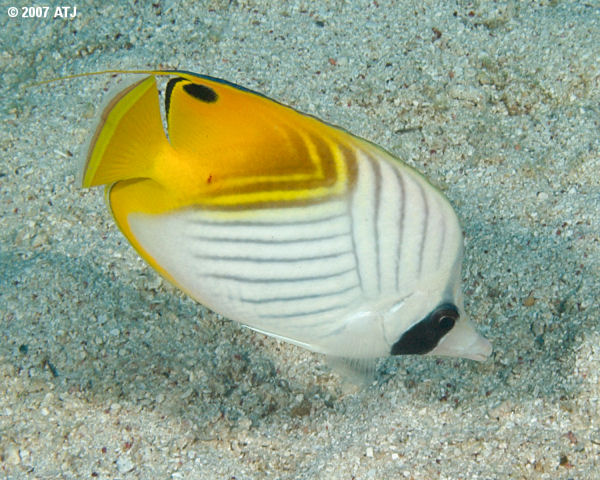 Threadfin butterflyfish, Chaetodon auriga. 7.5 m. |