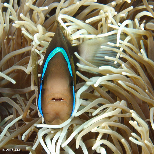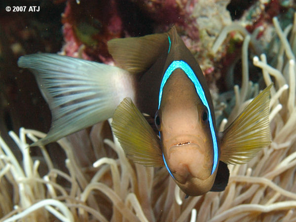Orange-fin anemonefish, A. chrysopterus. 7 m. |