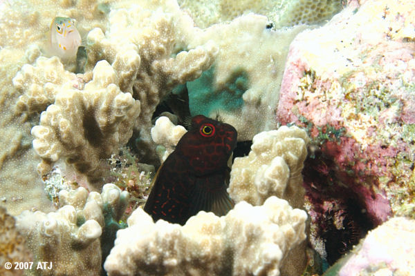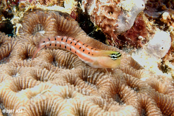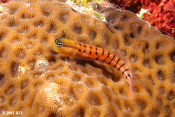 Tiger blenny, Escenius tigris. 21.6 m. |