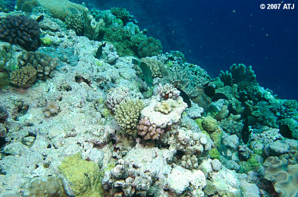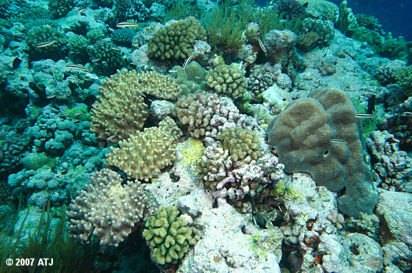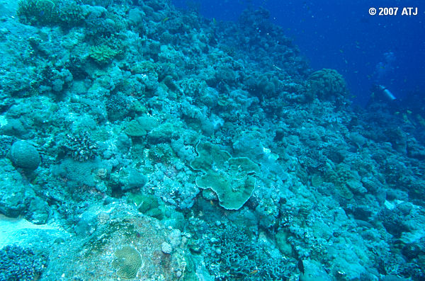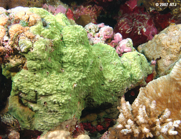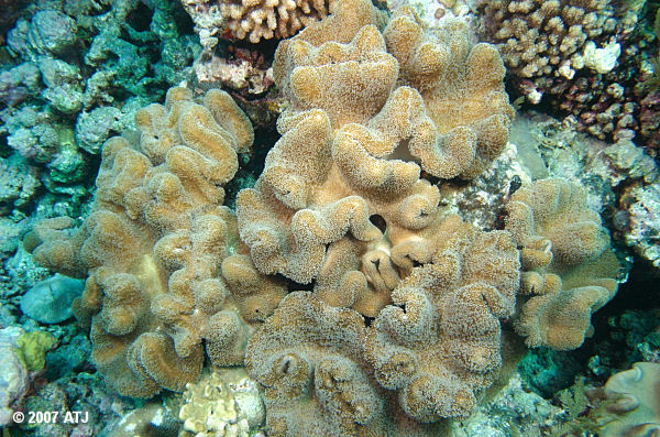 Soft coral, Sarcophyton sp., colonies. 5.1 m. |