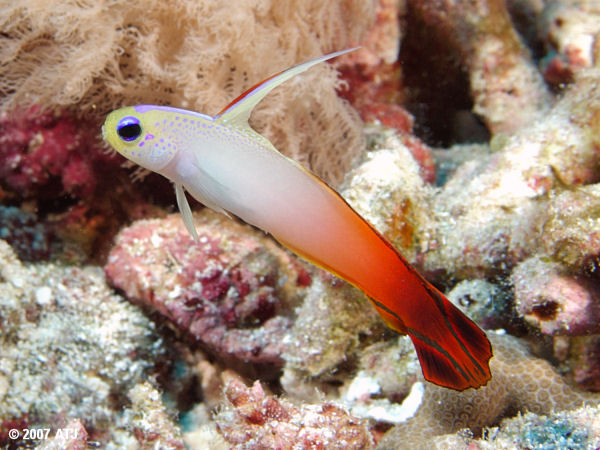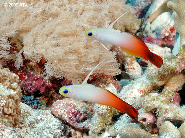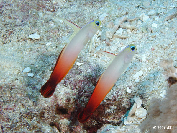 A pair of red firefish, Nemateleotris magnifica. 23.1 m. |