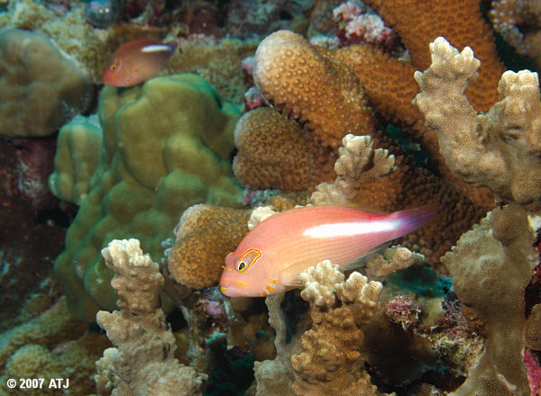 Blackside hawkfish, P. forsteri. 4.7 m. |