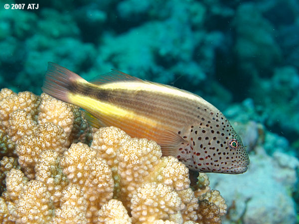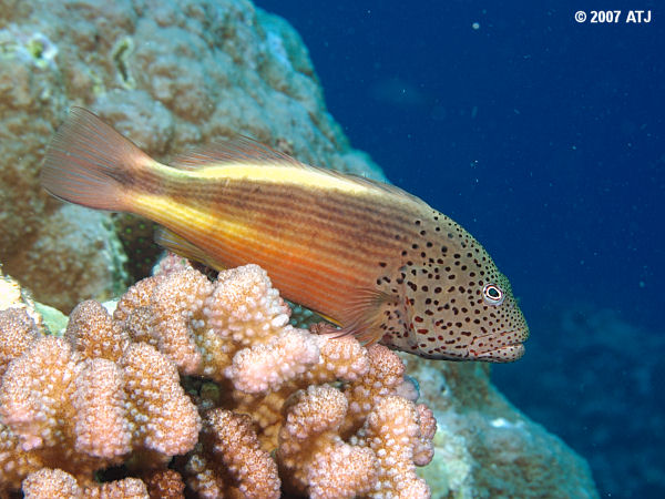 Blackside hawkfish, Paracirrhites forsteri. 5.7 m. |