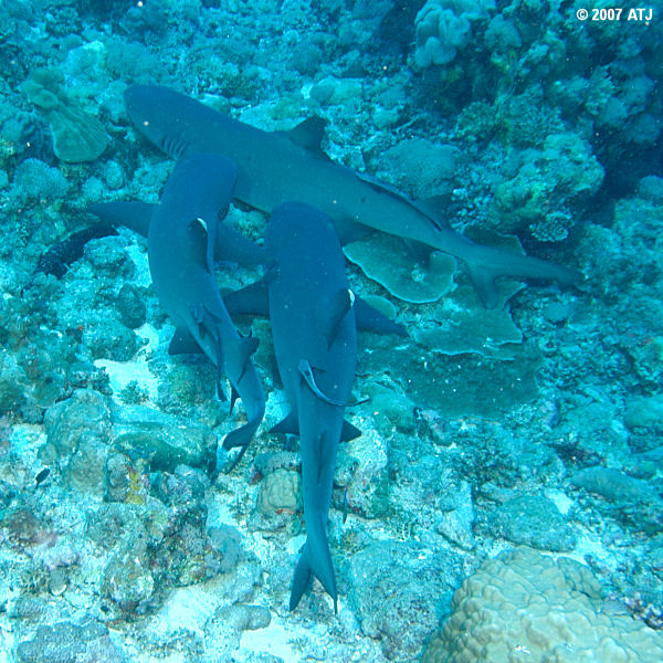 Three white-tip reef sharks, Triaenodon obesus. 23.1 m. |
