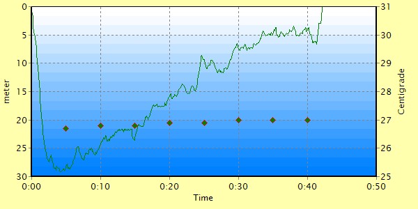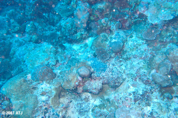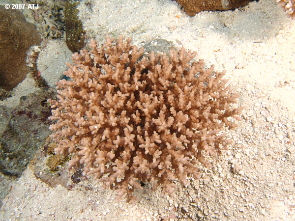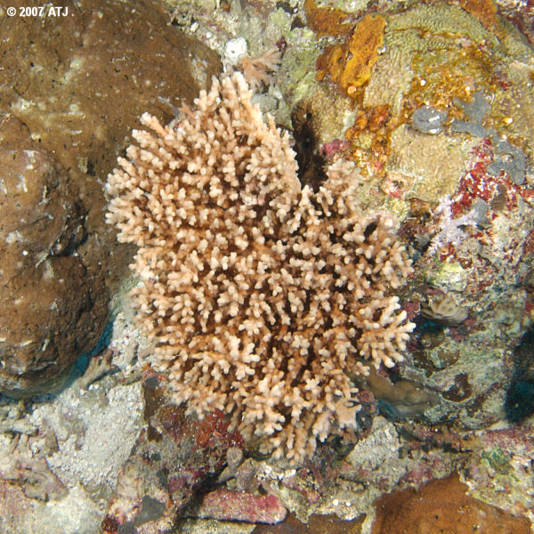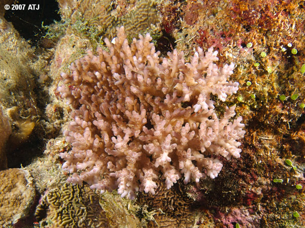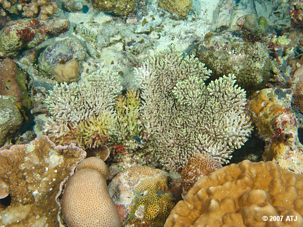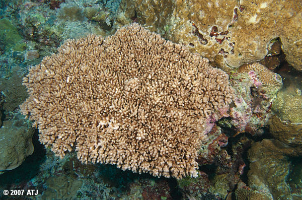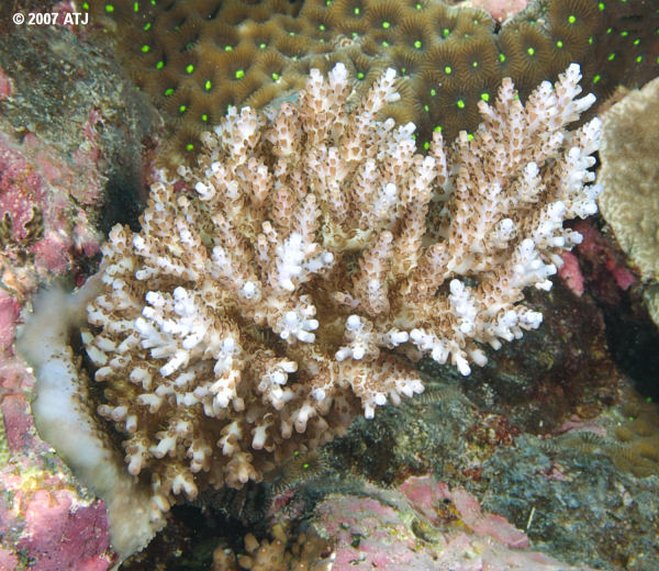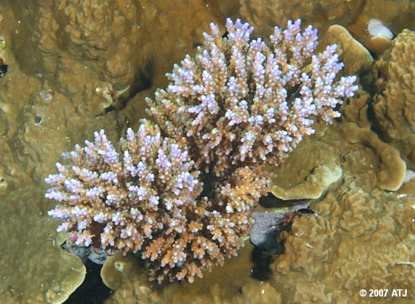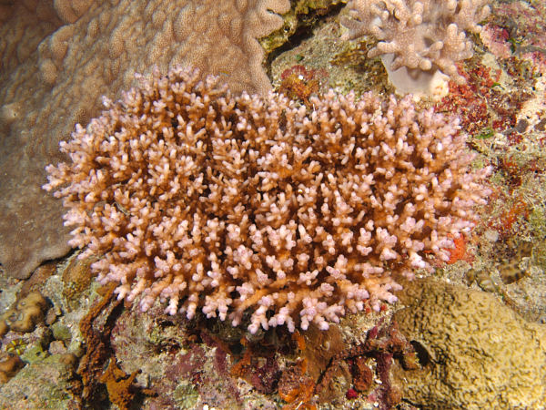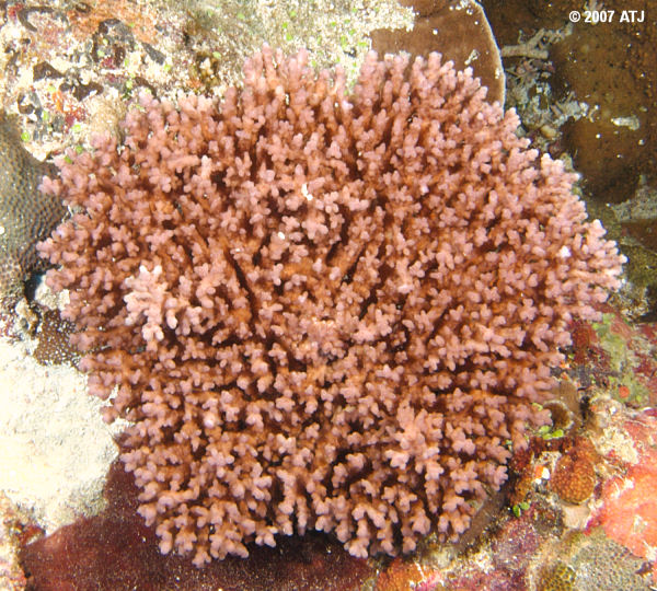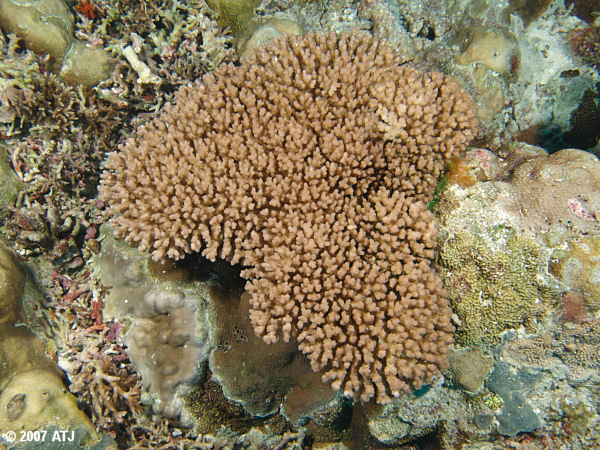 Acropora sp. colony, probably A. aculeus. 28.7 m. |