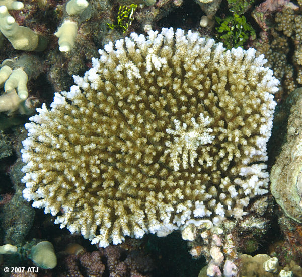 Acropora sp. colony, probably A. grandulosa. 28.9 m. |
